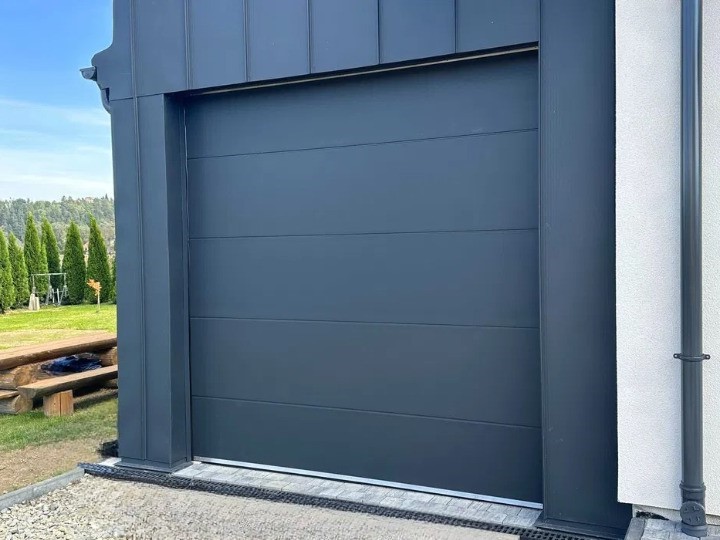 - Nowoczesne, trwałe i minimalistyczne bramy z nakładką aluminiową
